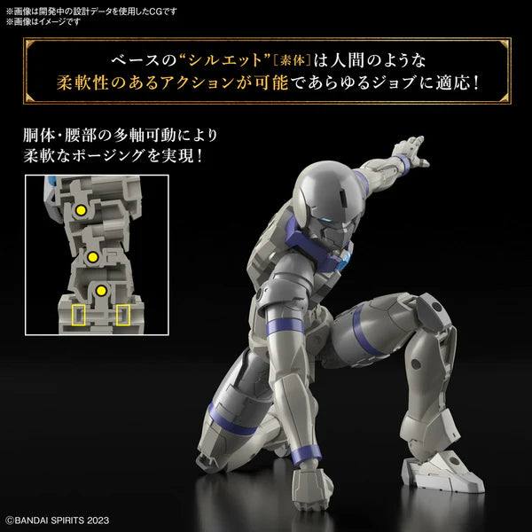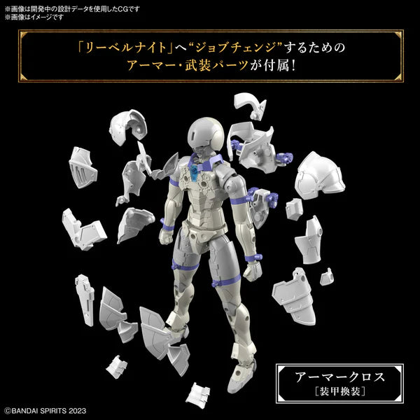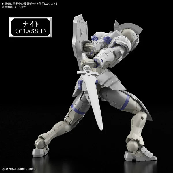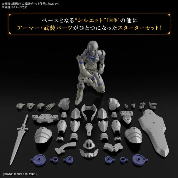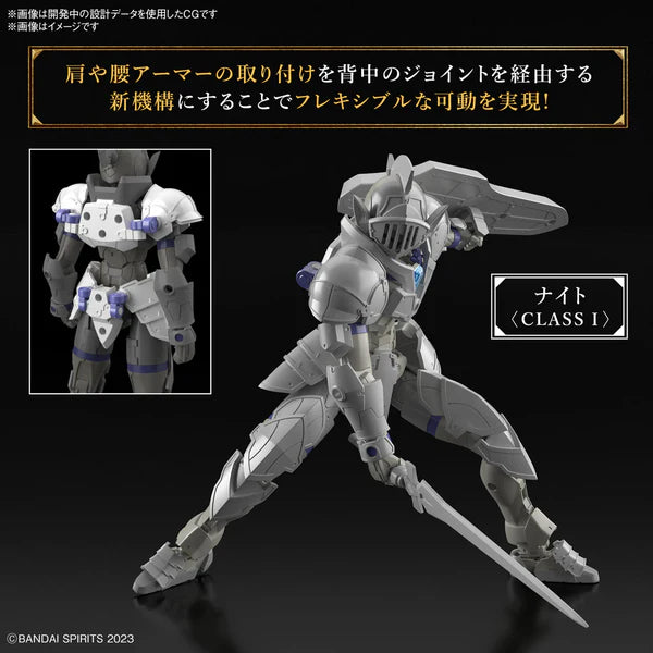 Bandai's new figure-kit series, "30MF (30 Minutes Fantasy)," debuts with the Liber Knight! This new lineup allows you to create your own fantasy-based figures and characters! The starter set includes armor and armed parts in addition to the base "silhouette" (elementary body). The "silhouette" is fully posable like a human body; movable axes are provided on the head and neck for natural flexibility. The new structure of the shoulder joint keeps the body line intact, even in bold poses. The movable parts of the chest, torso, and waist work together with the sliding mechanism at the base of the waist joint to create natural poses. Armor and armed parts are included to combine with the "silhouette" to create the Liber Knight! A new mechanism for attaching shoulder and waist armor via joints on the back allows for flexible movement; swords and shields can also be mounted on the back or waist with joint parts. Order him for your own collection today!