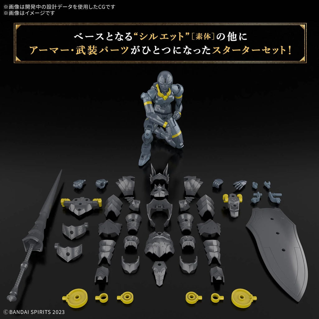 Bandai's "30MF (30 Minutes Fantasy)" figure-kit series allows you to create your own fantasy-based figures and characters! The starter set includes armor and armed parts in addition to the base "silhouette" (elementary body). The body included with the Rozen Lancer is the same as the 30MF Rozen Knight; the "silhouette" is fully posable like a human body, including movable axes on the head and neck that allow natural flexibility. The shoulder joints are designed with great care to keep the body line intact even in bold poses; the movable axes on the chest, torso, and waist work together with the sliding mechanism at the base of the waist joint to achieve natural poses. Armor and weapon parts are included to combine with the "silhouette" to "change jobs" to that of the Rozen Lancer! His weapons are a lance and a shield; flexible movement is achieved by attaching the shoulder and waist armor via the joint on the back. The attribute of the Element Core is "lightning." The face design and color are different from the Liber Lancer (sold separately). Order him for your own collection today!