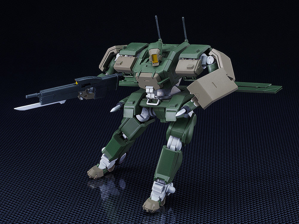 · The model stands at approx. 110mm in height and joints are fully articulated. Interchangeable hand parts are included. · Armed with a 30mm assault rifle and knife. · The wings on its lower back can be displayed both open and closed with the help of interchangeable parts. · The pile bunker at the waist can be rotated and can be displayed extended or retracted using the short and long interchangeable parts.