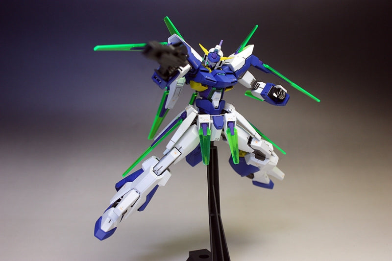 Here's the final form of Gundam Age as it appears in its eponymous anime! It features translucent green plastic to replicate all of its detachable remote weapons and also has a special stand and base for display purposes. The model comes complete with a transformable core fighter to replicate docking sequences.