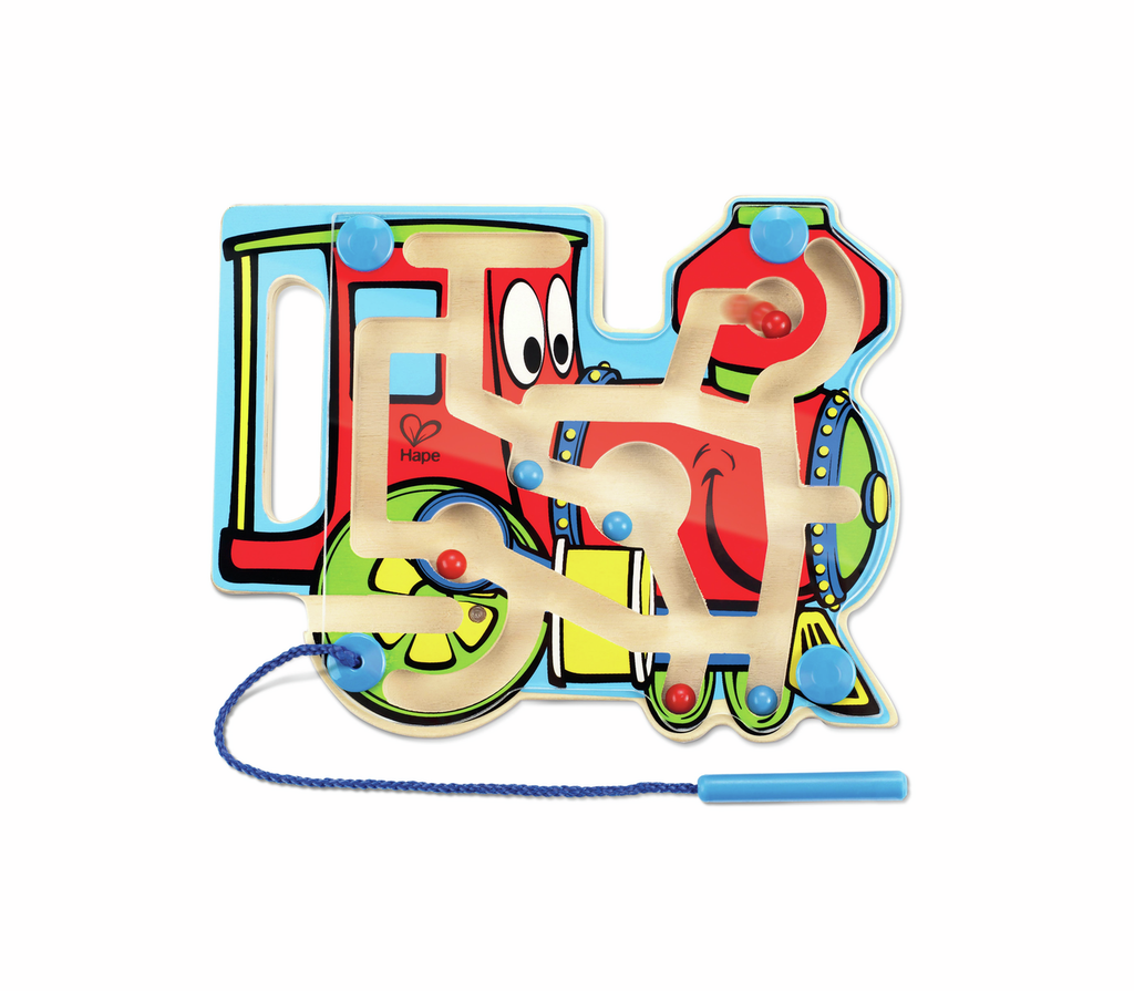Hape Choo Choo Tracks ll aboard! A magnetic wand tracks marbles through this hand-held maze. ine Motor Skills: Promotes dexterity, hand/eye coordination, and manipulation. Problem Solving: Introduces logic, matching, spatial relationships, critical thinking, and an understanding of cause and effect. ecommended Age: 24M+ Package Dimensions: 252 x 201 x 28 mm Product Dimensions: 196 x 156 x 21 mm"