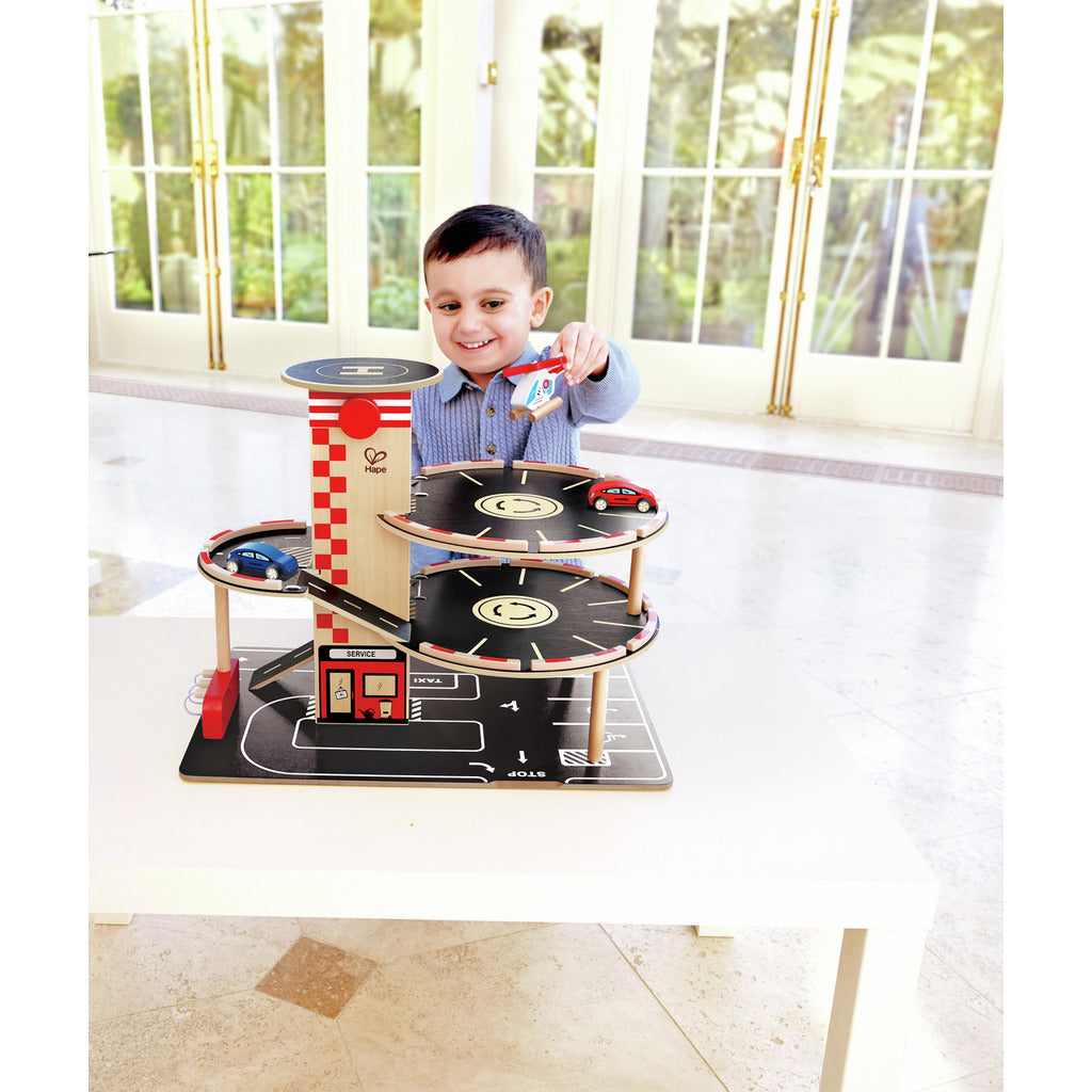 With four levels of parking, gas pumps, and a roof top landing pad, busy drivers will be coming and going in every direction. Listen to the stories your child creates when playing. Add a variety of cars and figures to up the play.