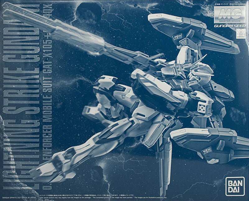 From "MOBILE SUIT GUNDAM SEED MSV," the Lightning Strike Gundam in Master Grade. It accurately reproduces the Lightning Striker Pack's unique features, including composite pods and a 70-31 Electromagnetic Rail Cannon with combining capabilities.