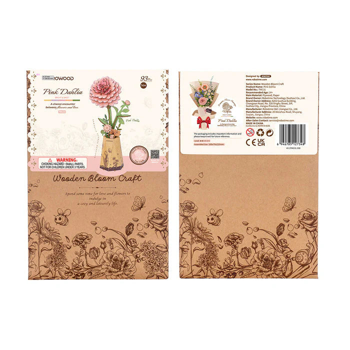 Robotime Rowood Pink Dahlia DIY Wooden Flower 3D Wooden Puzzle TW131