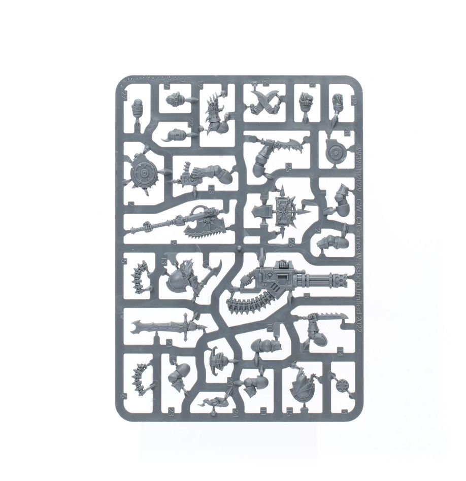 This multipart plastic kit builds 10 Legionaries, versatile infantry for your Chaos Space Marines armies in games of Warhammer 40,000. Equipped with a variety of ranged and close combat weapons, they're ready to take on any enemy and claim key objectives. The kit includes parts to build an Aspiring Champion who can be armed with a plasma pistol, boltgun, or bolt pistol, and a power fist, power axe, power sword, or power maul. He also has a choice of two different backpack toppers.