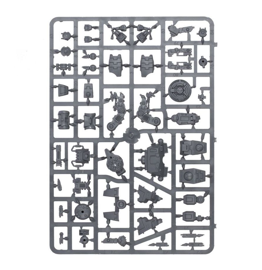This multi-part plastic kit contains 91 components and a T'au transfer sheet with which to make a Broadside Battlesuit and two Drones.