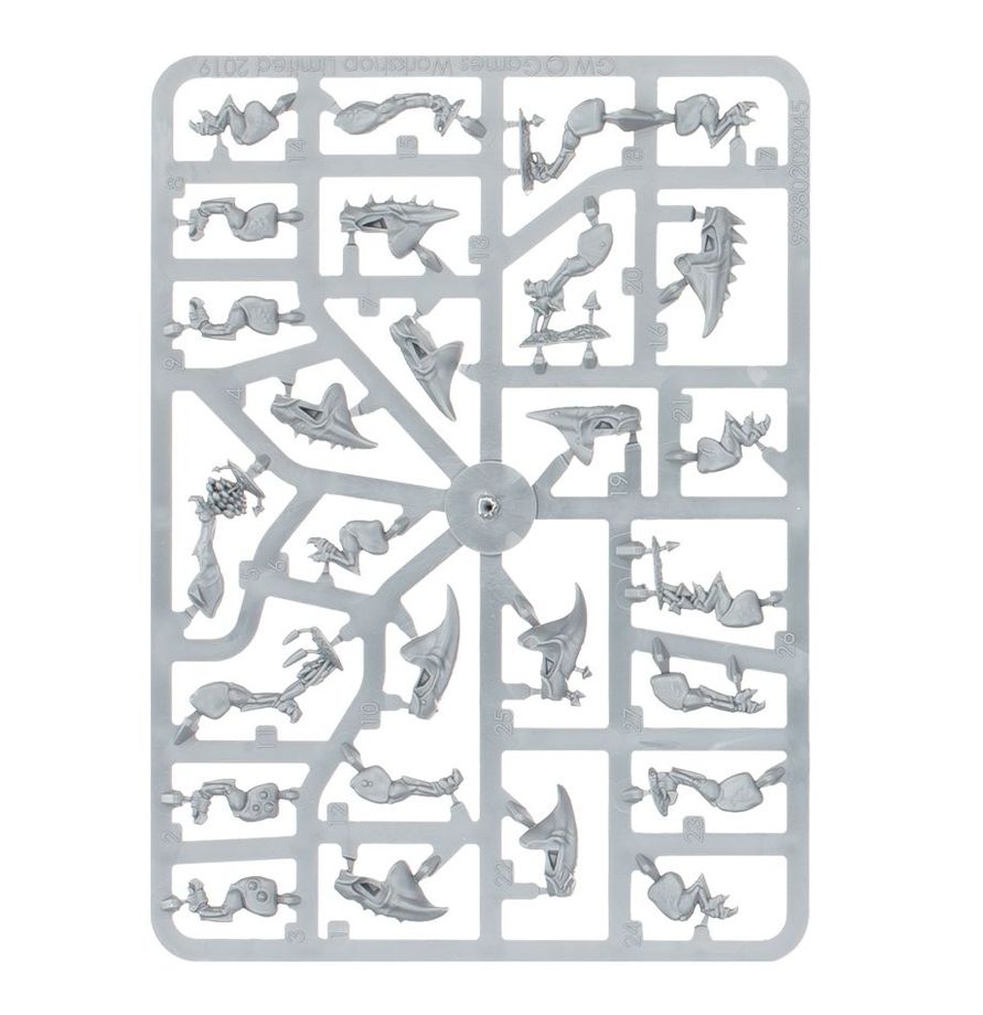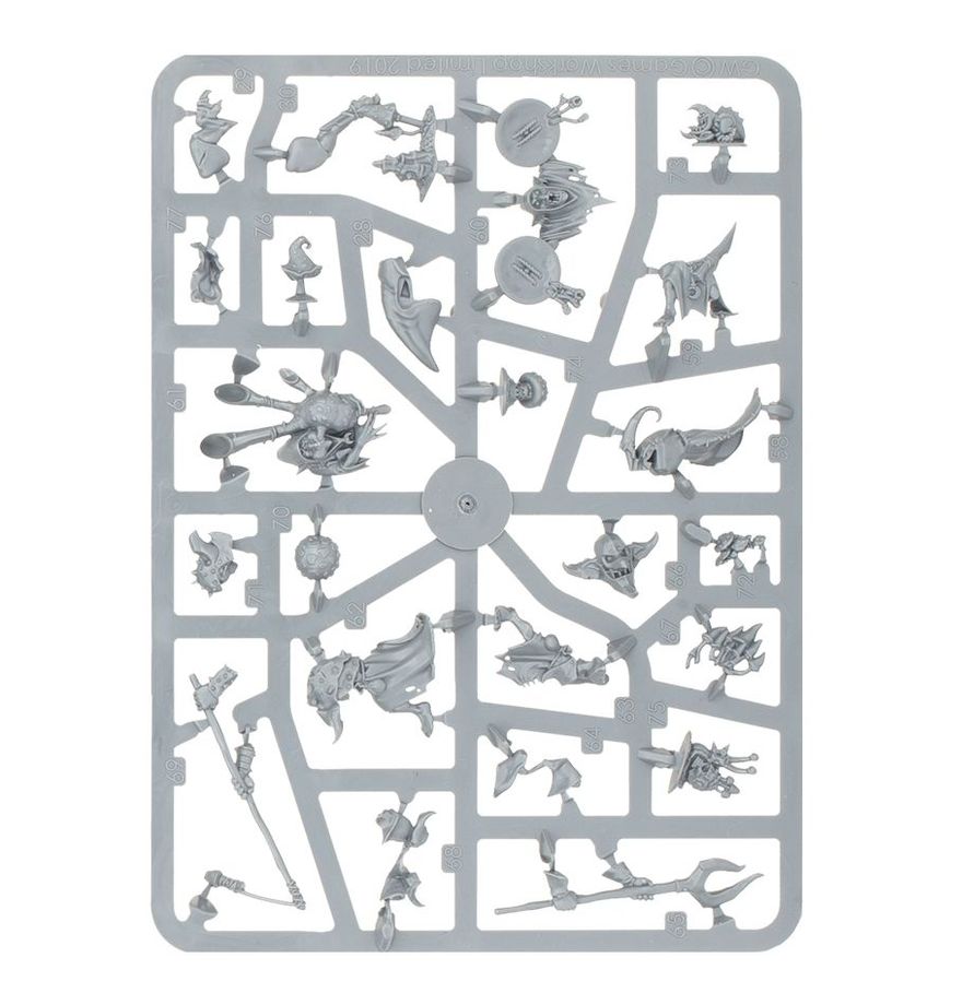 This kit features everything you need to build a herd of 10 squigs, with highly customisable faces. You'll also get a pair of Squig Herders to motivate your Squig Herds, with four possible variant models, of which you can build two. You'll also get accessories for basing – including a snail squig...